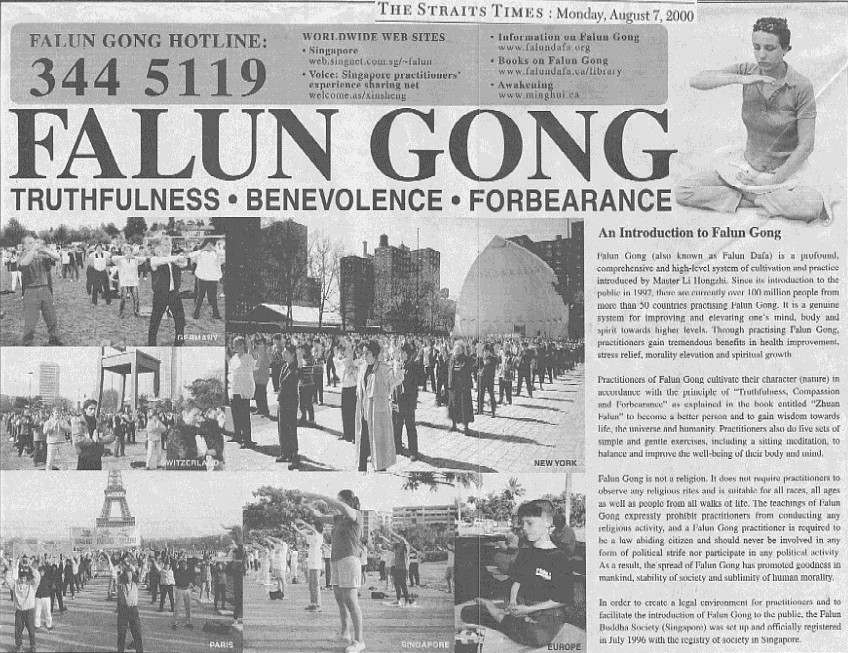 图片:新加坡最大的报纸开始接受法轮功正面宣传 (2000年8月7日)