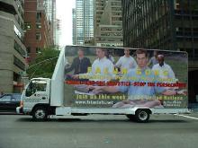 5)图片:行驶在曼哈顿闹市的法轮功广告车。