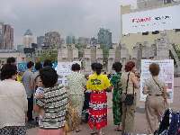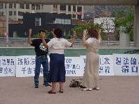 各国大法弟子在华尔道夫酒店附近等待VIP车队