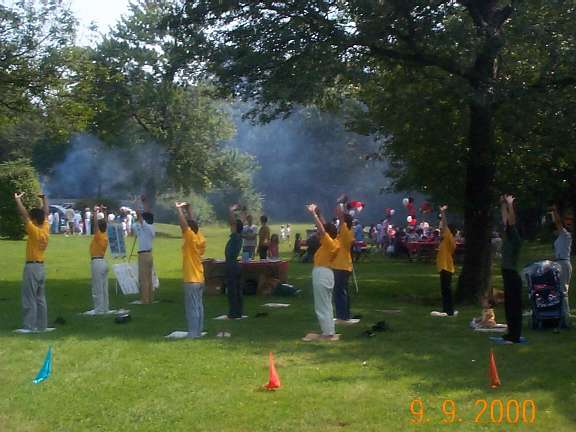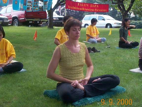 一位三、四年前在波士顿学过法轮功的中年女士,后来因故没能坚持练。这次看到学员们那祥和、纯净的炼功场面,静立一旁良久,最后她问:“我能不能和你们一起炼?”然后就加入炼功行列,认真地做完了五套功法。