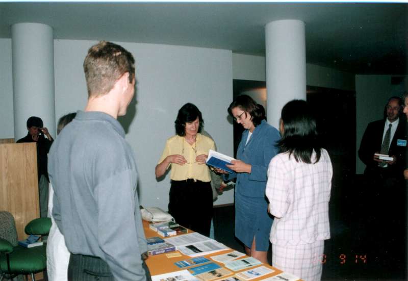 欧洲学员向Cecilia女士赠送瑞典文"转法轮"和"中国法轮功"