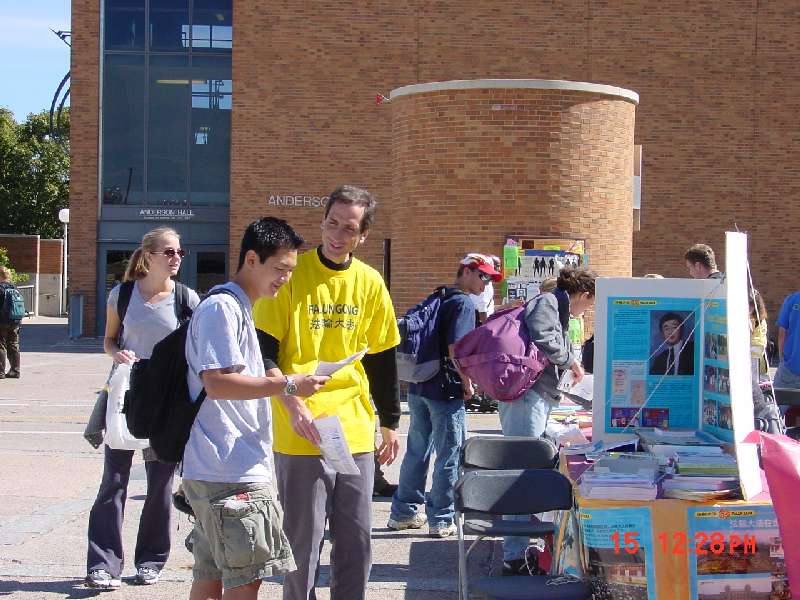 其间,学员们发现前来参观的人现在已经大都听说过法轮大法,但是,对于甚么是真正的法轮大法没有基本的概念。我们的学员耐心的一遍一遍的向人们讲述着法轮大法的法理和最近一年多来在中国所发生的真实故事。