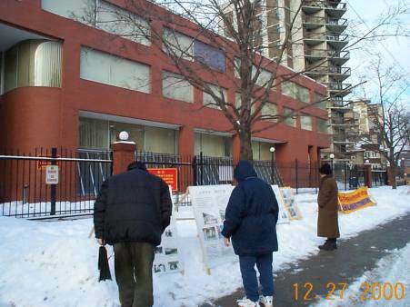 领馆前有各个国家和地区来领馆办事的人士,有的将要去中国,还有很多过往行人,用这种直观的方式向他们说明真象很有必要,而且取得了很好的效果,每天在领馆出出进进的人都有看展板的,有的看完之后要报纸;有的看完之后要求签名;有的口头表达对我们的支持与同情;有的鼓励我们坚持下去。更重要的是使更多的人认清了江泽民邪恶之流必然灭亡的下场,重新摆放了他们的位置。