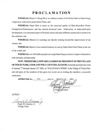 伊利诺伊州沃伦维尔市宣布“李洪志大师日”