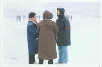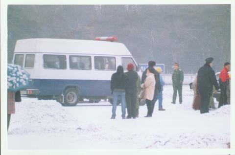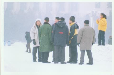 (对于横幅,当时由于离得太远没有及时拍下来,很遗憾,也由于我们也被人跟踪、盯梢、为了保全底片,我们不得不退出广场。照片由于下雪光线不足,不太鲜艳。)