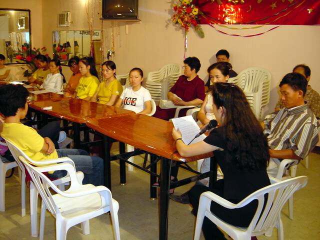 【明慧网2001年1月26日】 塞班岛学员利用大年初一开了一次小型心得交流会作为给师父的新年贺礼。在四位学员发言后,选读了明慧网上两篇大陆学员和两篇西人学员的体会,然后大家自由讨论如何更好的洪法和说清真象,如何真正发挥大法一粒子的作用。学员们都踊跃发言,针对塞班岛的情况提出很多建议,使这次法会真正起到共同提高的作用。