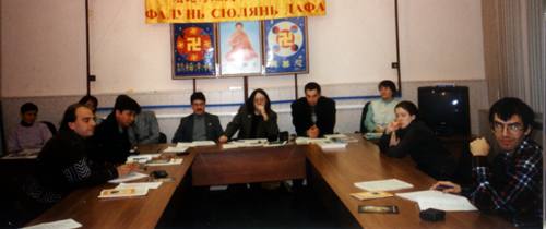 今天在这里,俄罗斯法轮大法学员和莫斯科国际大赦组织共同举办了题为:“法轮功真象在中国和在俄罗斯”记者招待会。出席记者招待会的有俄罗斯人权保护组织的代表和一些报纸、杂志的记者,还有中国政府大报和新华社的代表。