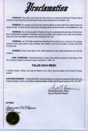 【明慧网2001年1月27日】 佛罗里达州波尔顿比奇市宣布2001年1月6-21日为“法轮大法周”