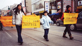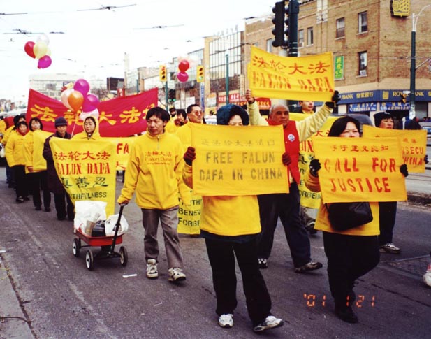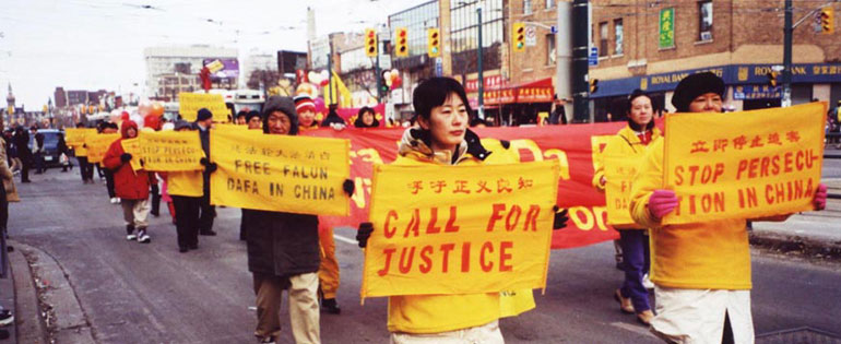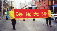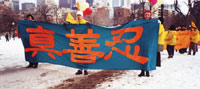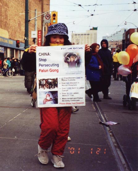 【明慧网2001年1月28日】 2001年1月21日,新春佳节到来之际,加拿大多伦多法轮大法学员和支持者在唐人街举行数百人游行,呼吁中国江泽民之流立即停止对法轮功学员的残暴镇压。