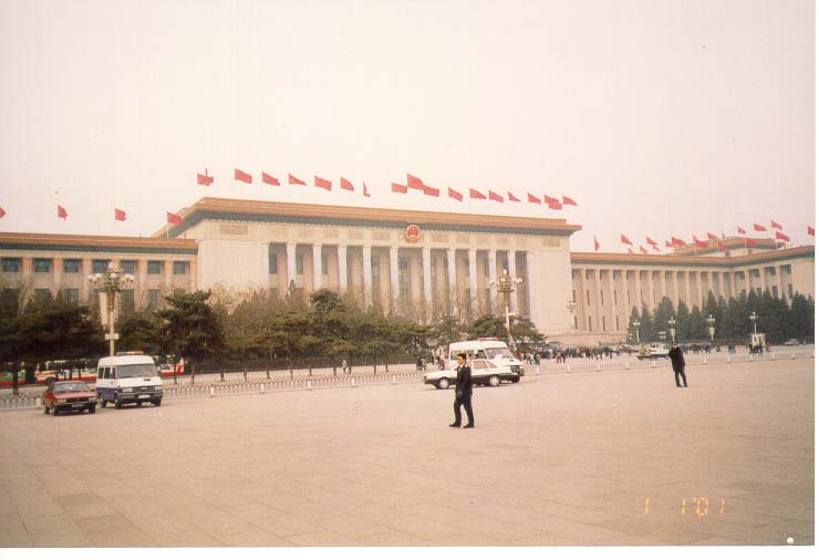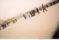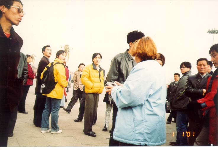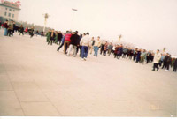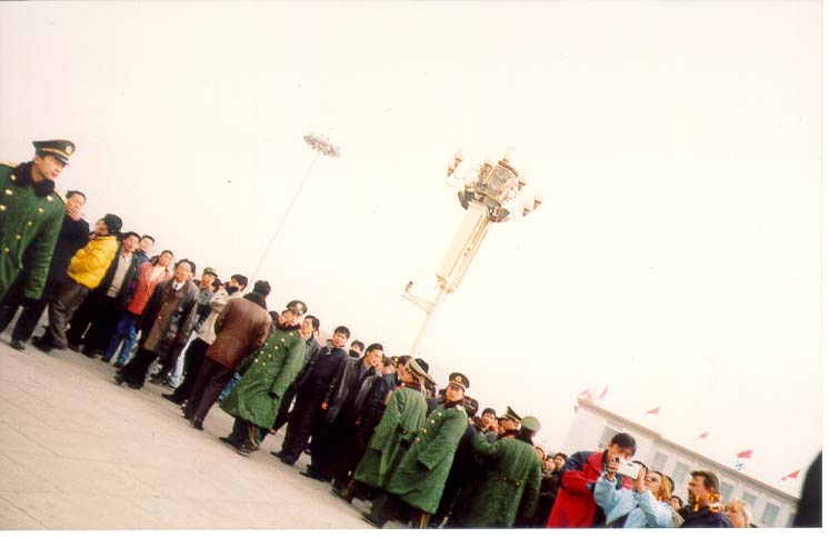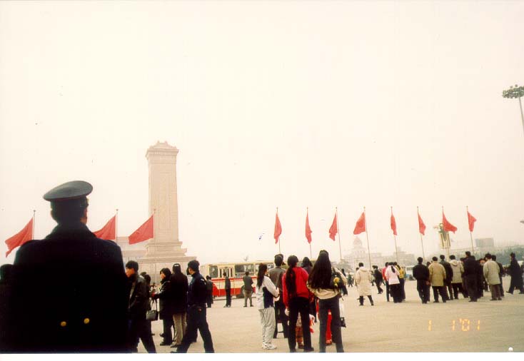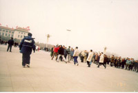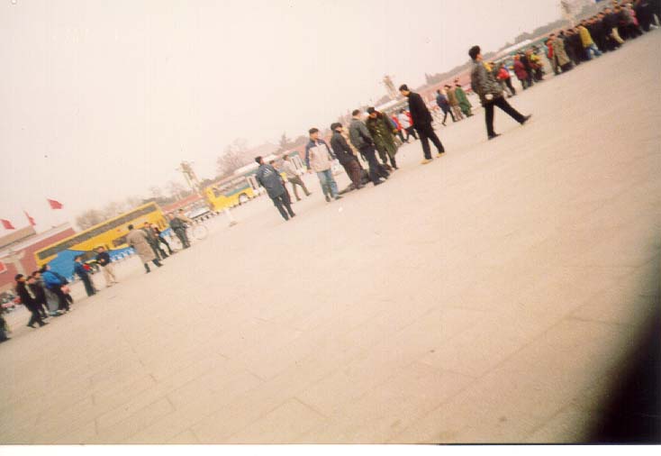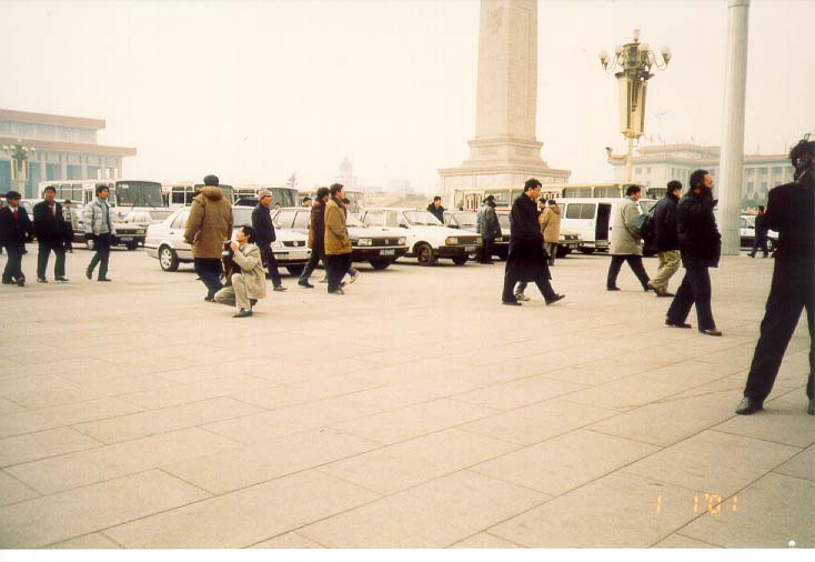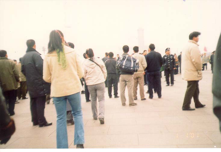 当天,广场上天空灰暗惨白,11点之前无风,但广场上空弥漫着粗颗粒的灰尘,不断下落。