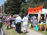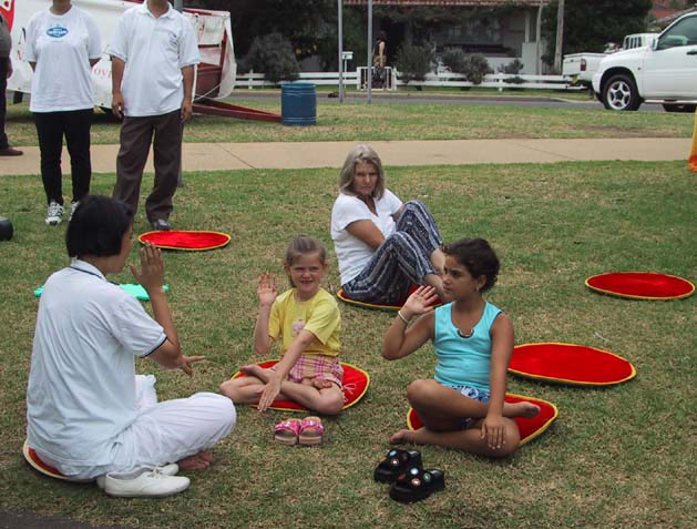 虽然五龙岗人很多都通过新闻宣传知道了法轮功,但他们还是非常感兴趣地驻足仔细阅读展示真象的图片资料。很多人也主动在阅读后签名表示支持。当日气温竟高达摄氏42度,学员们不顾炎热,在人群中传发资料,主动向行人和栖息在沙滩边的人们讲解大法真象,徵求他们的签名支持。当日洪法延续了六个多小时,我们的炼功和揭露邪恶的图片不断的吸引了大量的世人。