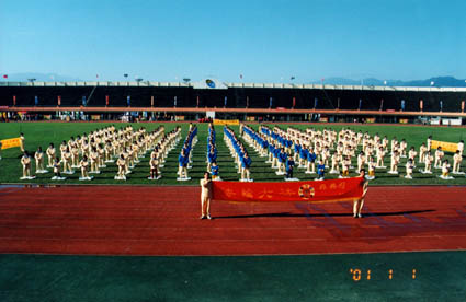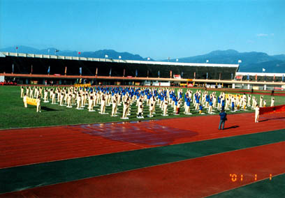 清晨,期待的一刻出现,大法弟子到了宜兰运动公园,建点最久的炼功点上,由炼功音乐带领我们整队,这天在宜兰的弟子都很惊讶,昨日曾是阴雨绵绵,今日竟然星光满天,不由得又从心中感叹师父的慈悲。