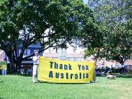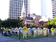 三、10月6日布里斯班市政广场(Brisbane City Hall)展示大法资料与洪法炼功
