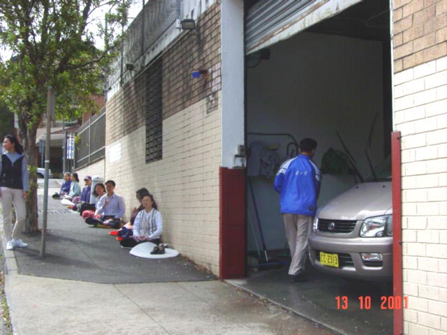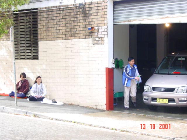 10月14日(星期日)清晨,悉尼弟子们照常在领馆前发正念。8时20分左右,一领馆人员借洗车为名把水喷溅到在旁打坐的弟子身上,甚至还把水喷溅到马路对面的弟子身上。该名领馆人员边喷水边说出辱骂性言语。在场弟子无人理会这种挑衅,有弟子默默离开,有弟子立即发正念。