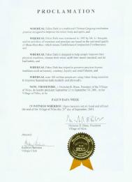 为此,我、尼克拉波勒斯、奈尔斯村长官宣布2001年9月23日至9月30日为奈尔斯村