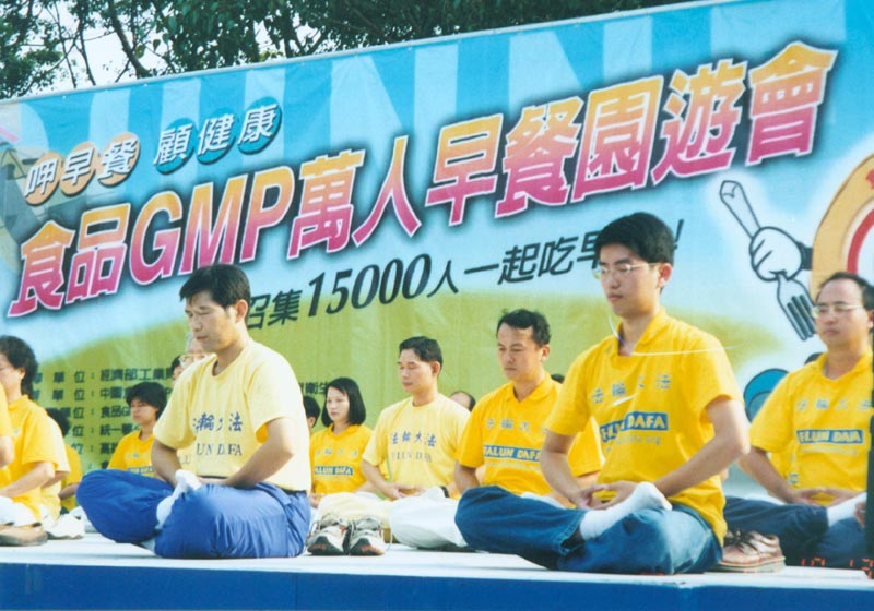 【明慧网2001年10月16日】繁忙的现代生活,很多人一起床就忙着赶车去上班、上学,高雄市卫生局为使市民了解“吃早餐”的重要,主办一场「万人吃早餐食品嘉年华」活动,主办单位也邀请法轮功参加,当天有两万三千多人集体吃早餐,创下新的吉尼斯世界记录。