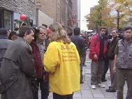 【明慧网2001年10月16日】当得知蒙市开展“北京文化周”活动、即将有200人的中国代表团来到时,蒙特利尔的大法弟子们意识到这是讲真相、救度众生的机会,应该尽可能使更多的人了解真象,清除他们头脑中受欺骗宣传而形成的不好的东西。尤其是西人学员,悟到他们应该在这次活动中发挥作用,利用他们自身的特殊条件,使尽可能多的代表团成员了解真象。