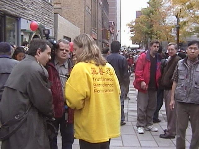 接下来,蒙市包括CTV在内的多家电台、电视台和各大报纸采访了现场的多位弟子,并从晚间节目开始陆续播出现场采访节目。弟子们在回答记者有关是否在示威的问题时说:弟子们今天出现在这里,是与惯常周末洪法活动的一种巧合,并非向谁示威。弟子们一贯要表达的,就是要告诉所有能听到的人:法轮大法好!“真、善、忍”是宇宙大法;镇压迫害酷刑折磨按照“真、善、忍”去做的修炼人是错的;必须停止镇压法轮功。一位电台的记者主动表示愿意把弟子们的心声传递给北京市长;并索要了洪法资料。
