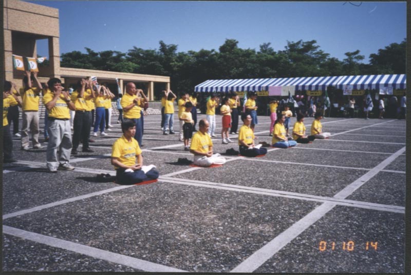 当悠扬的炼功音乐升起,一股祥和之气瞬间弥漫全场,大法音乐真有直入云霄之势。恰逢日正当中,艳阳高照,但大家「一个心不动,能制万动」每个人都深感大法的威德,荣幸能有这证实大法的机会。相信在场观赏的民众也可感受到这殊胜祥和,纯正慈悲的大法之场,正所谓「佛光普照,礼义圆明」。有趣的是,轮到下一个表演团队舞演出时,阳光突然躲入云端,天色一下子变暗,与刚才的骄阳丽天形成一鲜明对比。功法表演后,马上有民众询问炼功问题,学员也把握机会「讲清真象,揭露邪恶」,除了介绍大法,将身心受益的心得交流外,一并说明大法在中国受迫害的情形。活动在随后的「SOS紧急救援」征集签名圆满结束。