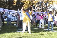 | 步行学员演示功法 | 一位步行学员讲述她在中国遭受迫害的经历 |