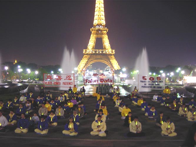 | 巴士底广场:呼吁国际社会紧急援救横遭迫害的法轮功学员 | 铁塔:烛光守夜悼念被江泽民集团虐杀的中国法轮功学员 |