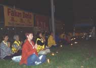 在炼过一遍动功后,学员们在静谧的烛光下,齐发正念除恶。然后,学员用中英文两种文字,先后向中国大使馆郑重宣读了《法轮功学员要求停止国家恐怖主义》声明,“辽宁省一法轮功女学员被警察自四楼窗户扔下活活摔死”,以及“加议员说中共镇压法轮功是国家恐怖主义”的新闻报道。声明指出:“迫害法轮功学员的一切行动都是江XX的指令,由中央、省、市各级“610”办公室执行。”“在过去两周里,法轮功修炼者在监禁期间被报道的死亡人数已超过20人。几乎所有的死亡都被诬陷为‘自杀’或‘自然原因’。”声明并呼吁下月出访中国的加拿大总理克瑞强“显现和平保卫者的本色,站在正义一边,代表加拿大人民发声,严厉谴责江泽民对法轮功学员实施国家恐怖主义。”