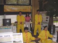 用于正面讲清法轮功真相的图片展吸引了很多人的目光。交谈中同修们得知很多人以前已经听说过法轮功,但由于消息来源及观点不一,很多人的认识都还很模糊。看着美国,加拿大及世界各国,各地政府对法轮功的褒奖状,看着全球各地法轮功修炼者炼功的宏大场面,看着中国大陆法轮功学员所遭受的苦难,许多观众才真正的了解什么是法轮功。在了解江政府镇压法轮功的真相后,大家纷纷表示不可理解,并对中国法轮功学员的遭遇深表同情。有许多人欣然在征签表上签名,并表示如果生活在自由世界中的人们如果对法轮功事件视而不见,世界上就不再有正义和公理。有些人还记下了我们的炼功地点,表示一定要学习法轮功。