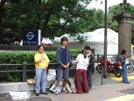 虽然许多日本弟子前往参加澳洲法会、华盛顿法会和纵贯日本的SOS步行活动,第二天上午,还是有很多的弟子,带了大批英文、日文真象报纸,来到日比谷公园正门,大家首先发正念,用我们最纯正、最坚定的正念,保证这次活动的顺利进行。