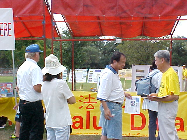 在我们步行的公路上,汽车如同潮水一般,来来往往,川流不息。看到我们打的“SOS!紧急救援法轮功:中国政府停止镇压”的牌子,不少美国人按喇叭来表示支持,打V字手势祝我们成功。有人喊“英雄们,了不起呀”。最有意思的事,有几个美国人齐声高呼“法轮功万岁”。他们生命中明白的那一面真是了不起。有一个美国人叫“尼克”。他两次开车追上我们,和我们一起交谈。他说他原是虔诚的天主教徒,后来觉得教堂已不是修炼的地方,很多人念念不忘的就是“钱”。于是,他把追求转向东方。他去了西藏,一学就是十八年,可那里的修法仍有许多不解之谜。他说,他是一个事业有成的建筑承包商,可物质的富有不能解决他精神上的贫困。于是,他开了一个专门销售有关修炼书籍的书店。当他了解到法轮大法的“真善忍”法理,知道大法修炼不要一分钱,“心性多高功多高”,他激动不已,说“这就是我一生在找的呀!我一直在找能让人真正修炼上去的法!”在我们的帮助下,当天晚上就和附近的弟子联络上。第二天就开始学五套功法。像尼克这样的人,不只一个,他只是一个典型而已。我们平均每天发出去二百份介绍法轮功和讲清真相的资料。在偏僻地区的人们,都很珍惜我们的资料。有一次,一位学员把一份“紧急救援”的资料发给一位中年白人妇女时,她马上认真的阅读起来。看完后,她用善良同情的眼光关注着我们,然后拿出二十美元送到那位学员手中。当学员告诉她,我们不要钱,但您可以用资料介绍的各种方式支持我们时,白人妇女表示一定会发信或电子邮件给议员们,表达对中国发生的事情的关心和对法轮功的支持。临别,她紧紧拥抱了发资料的学员,双眼满含泪花。