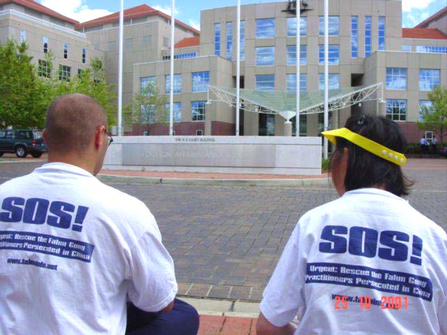 【明慧网2001年10月28日】在每年一度的澳中人权对话前夕,澳洲大法弟子于10月25日(星期四)在首都堪培拉向外交部递交了一封信,敦促澳政府在本次人权对话中关注中国法轮功修炼者的人权状况。有70余名大法弟子参加了这次行动。之后,大法弟子们先到大使馆对面发正念,然后又到市中心洪法,散发大量大法资料。