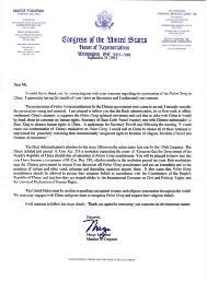 布什政府对此事的关注是去年通过的第106号国会决议的继续。美国国会辩论并通过了国会第218号议案(H.Con.Res. 218),该议案表达了国会的意见,即中华人民共和国政府应停止施加于法轮功修炼者身上的一切暴行。你将很高兴地看到,今年我将成为国会第188号议案(H.Con.Res. 188)的发起人之一,这个议案与去年通过的议案相类似,都是敦促中国政府释放所有被关押的法轮功修炼者,要求它立即停止对法轮功修炼者的虐待以及其他各种形式的野蛮的、非人道的、污辱性的折磨。该决议还指出,根据中华人民共和国宪法,法轮功修炼者有权追求他们的信仰,并且中国政府应该遵照《国际公民与政治权利公约》以及《世界人权宣言》来对待他们。