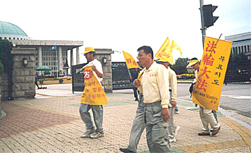 图片报道:韩国学员在中国大使馆附近静坐请愿