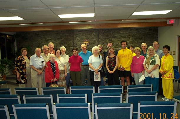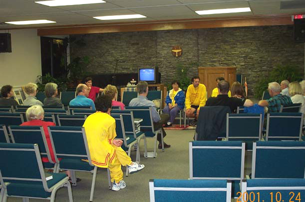 10月24日晚间,学员们应邀来到UU教堂,向前来参加活动的当地居民介绍法轮功及在中国受到的迫害。