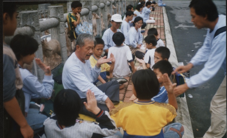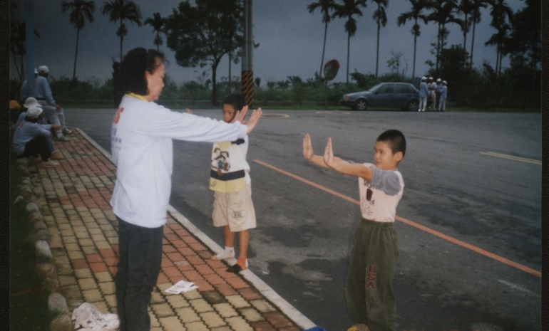 下午走过几个村后,再次回到大同乡公所,有十多名刚放学的学童来学炼五套功法。这些天真纯朴的小孩,机缘匪浅,有几位当场就感觉到腹部有法轮旋转。学炼静功时,起初他们漫不经心,无法盘腿,随着态度逐渐专注,最后都能双盘。大法是严肃的,只有庄重、认真地对待,才能「无求而自得」。家长虽然早已到了,但他们都极有耐心地等我们教功完毕才接学童回家。今天我们把「真、善、忍」带到这些青山绿水间的山地村落,而从他们至真纯善的性情中也让我们收获良多。