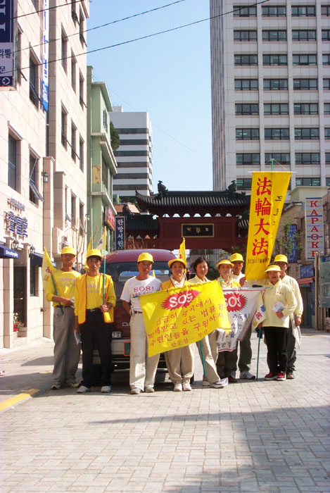 图片报道:韩国学员在中国大使馆附近静坐请愿