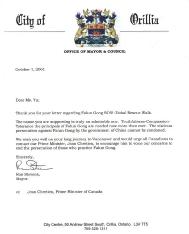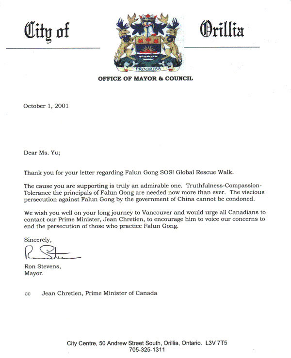 更令人感动的是,就是这位市长,曾经在今年春节期间给予过“法轮大法周”的褒奖,而在那之后,中国驻加拿大外交机构开始大量地向这个市寄送出攻击和诬蔑的诋毁材料。大法弟子以慈悲无私的境界始终向各级政府官员、社会各界及世人们讲着真相,而这封支持信就是这位市长在看穿邪恶的阴谋诬陷,明白真相后所做出的正义行为。