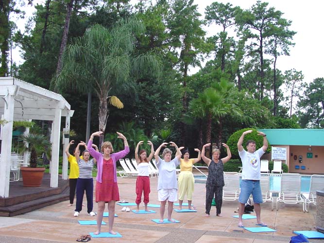 展销会结束的第二天,一些参展的人就来炼功点炼功了。