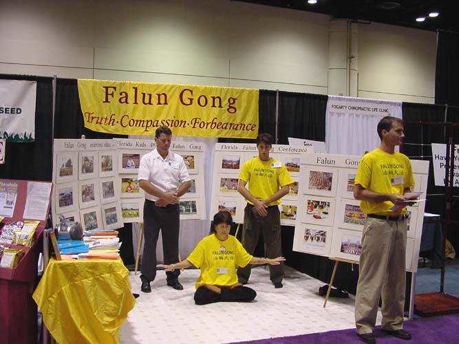 9月27至30日,在奥兰多市的会议中心举行了为期4天的南方妇女展销会。从全国各地前来参展人员和前来参观的几万人参加了展销会。来到法轮功展位的人们络绎不绝。奥兰多学员在自己的展位向人们介绍法轮功并做功法表演。很多人主动要求学习功法。在展位上学员们向人们展出了法轮功在中国的系列图片,并向人们介绍法轮功在中国的流传盛况和中国政府反目镇压法轮功的事实。一些图片展示了法轮功在当地的发展情况。一位老年报社的记者看到了法轮功在老年中心的图片非常高兴,他要求学员在他们的报纸上刊登这些照片和介绍文章。一个妇女说,她的丈夫是老师,她要让她的丈夫把“真善忍”介绍给他的学生。一些从各地来的人要邀请法轮功学员去他们那里介绍法轮功。