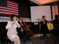 出身音乐世家的陈缨一家演奏了法轮大法音乐“普度”,把晚会推向高潮。音乐蕴涵着一种难以形容的宁静与慈悲,如涓涓小溪潺潺流入人的心田,浸透着心灵的最深处,使人超然又催人泪下。这里充满了和谐,融洽和友爱。
