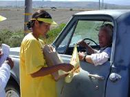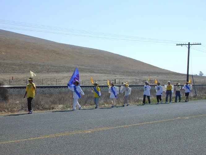 10月2日,步行第十二天,我们只炼完静功后就早早地踏上征程,以便及时赶上阿塔斯克德罗(Atascadero)市的新闻发布会。昨天晚上同修们开了四小时的车送来了足够的大法资料,这样我们就可以不再“吝啬”地发给沿途的居民。