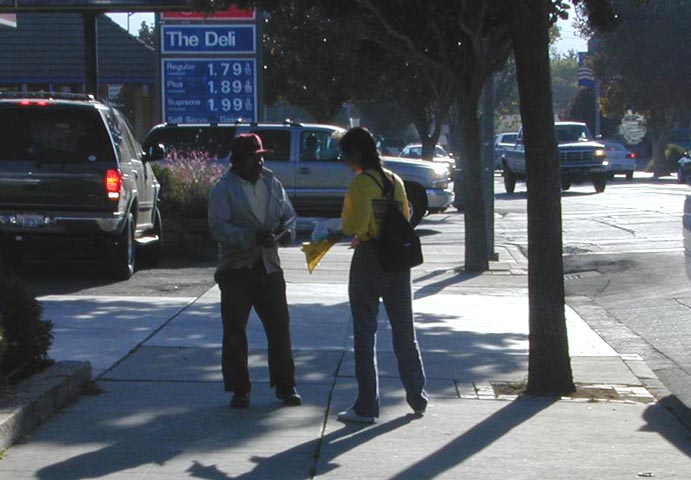 之后,我们沿街分发了许多SOS传单。几乎所有的加油站都同意把我们的传单放在他们最显眼地位置,以便顾客拿取。当一名学员正在行走时,突然传来一个声音:“你们为什么要抗议?”四处寻找之后,她才在路边的游泳池里找到提问的人,就走上前去解释。原来这名妇女看到了今天当地最大报纸上的报导,一眼就认出我们是法轮功学员。正解释时,游泳池里的一个小男孩也走过来,要了一张传单,说是要回家给他的妈妈看。