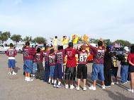 游行那天二十位大法弟子一大早就到达了集合地点,因为离游行还有两个多小时,所以我们就集体炼功和发正念。在那里就属我们的音乐声最大,连在一百公尺外都可以听到炼功音乐。前来参加游行的学生好奇地围观过来,当场跟着我们一起学功,我们感到很高兴!我们同时给在场集合的各游行队伍发真象传单,一会儿就看到几乎人人手上都拿着传单,整个操场上一片“佛光普照”。