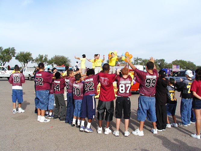 在三个月之前,我们便申请了参加游行的许可,租了展位。另外,就是需要一部游行的彩车。寻找彩车的过程也很有意思。那天去租车公司找车子,但是没有找到合适的。忽然看到一辆尺寸正合适的平板车停在隔壁,就过去看看,一问才知道是隔壁音乐行老板的车子。那老板人很好,愿意把车子借给我们,并不收我们的钱,而且还帮我们找个司机在游行当天帮我们开车。这使我们深深地感觉到,只要我们有这颗心去做大法的事,师父都会帮我们安排好的。在游行的前一个月,有许多邻州的弟子纷纷和我们联络,愿意来支援,有科罗拉多州、德州和亚利桑那州的弟子,大家分工合作准备横幅、展板和围绕在车子旁的莲花及五颜六色的气球。还有洛杉矶的弟子为我们准备了近万份SOS的讲清真象传单。到了游行前一天的下午,各州弟子来到罗斯维尔,有的装饰游行车,有的去展厅布置我们租的展位,很快一切都准备就绪。大法弟子作为一个整体更充分体现出了大法的威力。