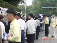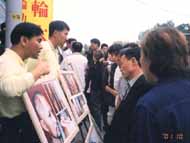 每一处都在热烈的交谈着,偶尔有个别人持中国当局的观点说法轮功,还没等我们学员开口,同胞之中有些人替我们反驳他的邪说,这些人见没有市场就仓惶离去,溜之大吉。在运动场入口处的一组真相图片面前人墙久久不散,也是谈论最热烈的地方。当话题谈到如何看待中国当局镇压法轮功时,竟有一位挤出人群大声说:“我们都来自中国,中国的情况我们比谁都知道。镇压法轮功的XX党简直是个强盗!他们说法轮功是邪的,我看他们自己就是邪的!”他那激动的心情,高亢有力的正义之声感染着在场的所有人,人们频频点点头……虽然也有极个别的人拒收传单,说远处肯定有人在偷拍录像或照相,但大多数人是诚心关心法轮功,曾苦苦寻找炼功点的大陆学员见到我们则是欢喜万分,而一些人在经过我们讲清真相后,主动递给我们他自己的联系电话,要求我们给他教功、寄大法书……其场面十分感人,令在场的我们大法弟子都深刻地体会到了一次大法的威力,体会到了向世人讲清真相的必要与重要。