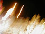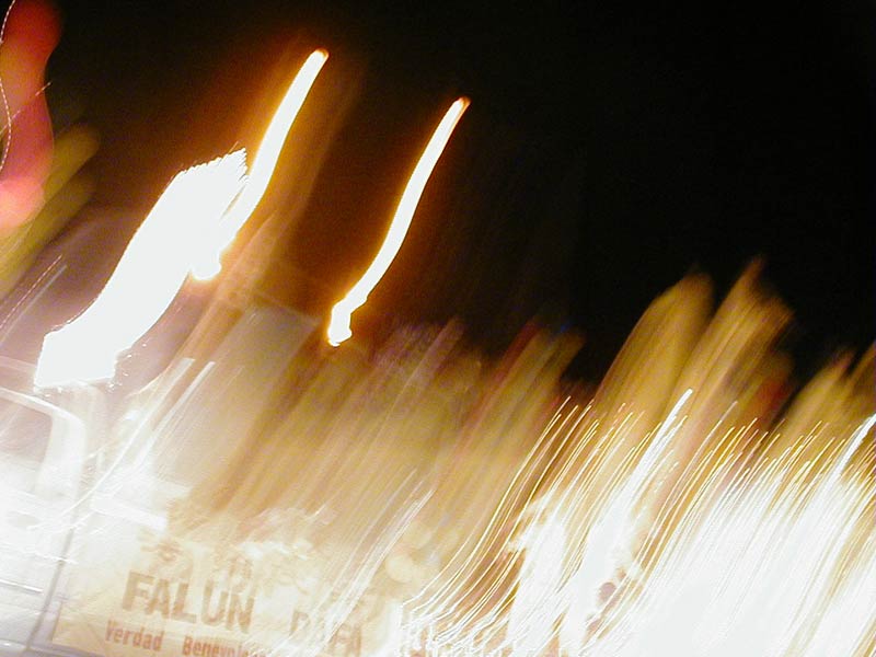 | 游行中的大法彩车 | 大法彩车上的奇观 |
