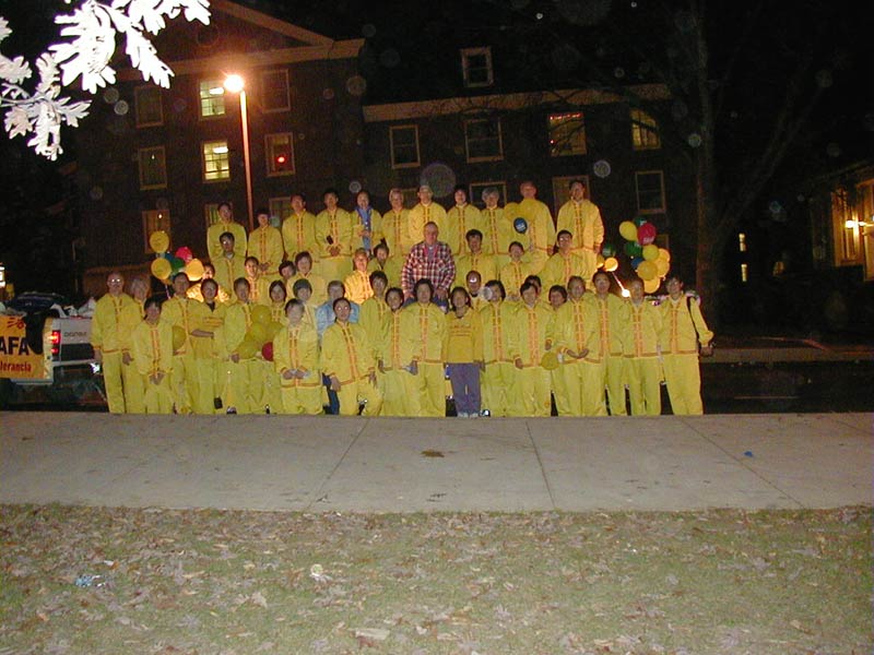 三位从新泽西来的同修们将一个拖板车装饰成一个舞台,可让同修们在上面展示功法。另外两位来自华盛顿特区的学员也熬夜共同来布置花车,由新州同修们做的两百多朵莲花为花车添上更多光彩。有将近五十位来自新州、费城、纽约、DC和匹兹堡的学员来支援这次的活动。我丈夫虽不修炼,也取消自己的实验而全力以赴的帮助处理许多相关的事宜。在大家共同的努力下,我们的游行获得许多的掌声,音乐带中师父的响亮庄严的声音在游行的队伍行进中不知唤醒了多少人沉睡已久的心,也不知融化了多少邪恶。这是第一次有这么多大法弟子在这个城市弘法。感谢师父给我们的一切,为我们做的一切,感谢同修们的牺牲自我,共同为大法的洪传发挥大法粒子的作用。