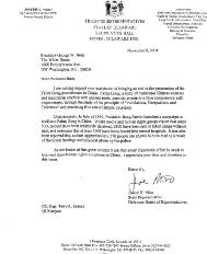 我请求你,我们这一伟大国家的领袖,运用一切外交手段来制止这些发生在中国侵犯人权的行为。感谢你的时间和你对这一事件的关注。