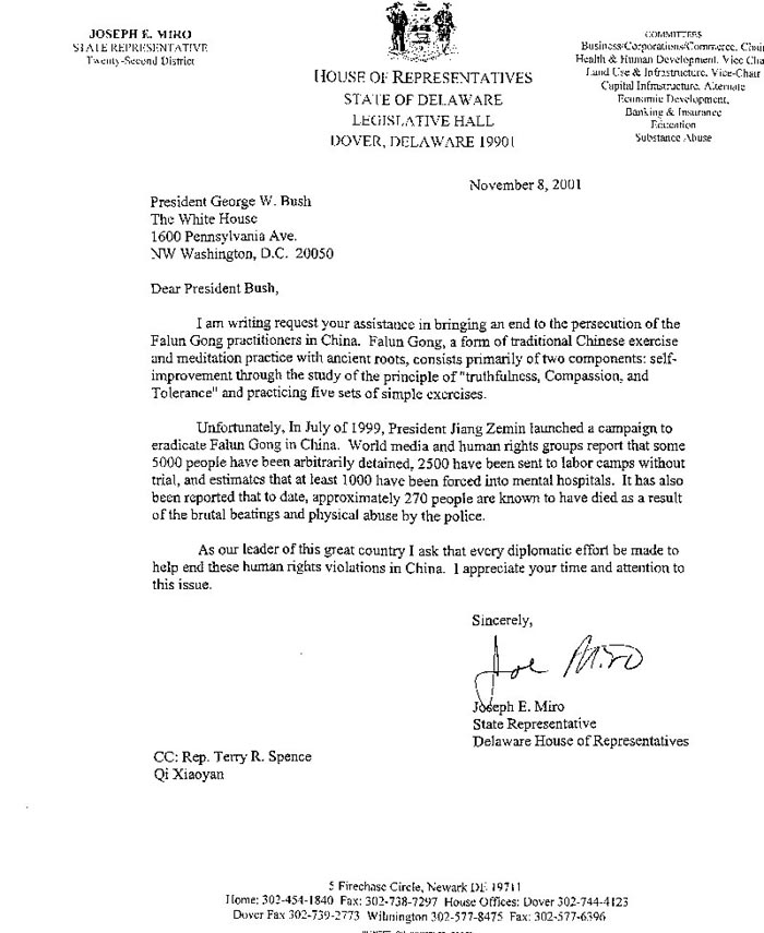 我给你写信,请求你帮助制止中国对法轮功学员的迫害。法轮功是一种基于古老智慧的中国传统修炼方法。其共由两部份组成:一部份是通过学习“真善忍”的准则而进行自我提升,另一部份是炼习五套功法。