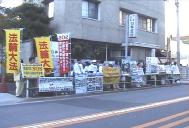于此同时,其他学员都在发正念排除干扰,警察走开了。过了一会儿,这名警察又回来了,但态度与前大不一样,带着请求的口气说:还是把旗拿下来吧,学员意识到日本警方肯定受到中国大使馆的压力,如果太僵持了也不行,于是便说:现在快中午12点了,就让我们打到1点吧。警察痛快地答应了。学员们望着这三面大旗在阳光下份外耀眼,心想:这金光闪闪的大法大旗,怎么能就这样拿下来呢?现在眼前发生的事情,不就是对我们的考验吗?对法坚定不坚定的考验吗?如果我们不动心,还有什么常人的事情能动摇我们。于是大家再一次齐发正念,铲除邪恶的干扰,让“法轮大法”的大旗在中国大使馆前飘扬。