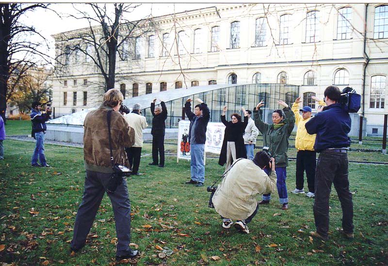 。一名西人学员向众人宣读了一封公开信。信上说这些西人学员去中国是为了呼吁停止镇压法轮功,停止虐杀法轮功学员。电视1台和4台还特约法轮功学员明日去电视台讲述法轮功真相及中国镇压近况。